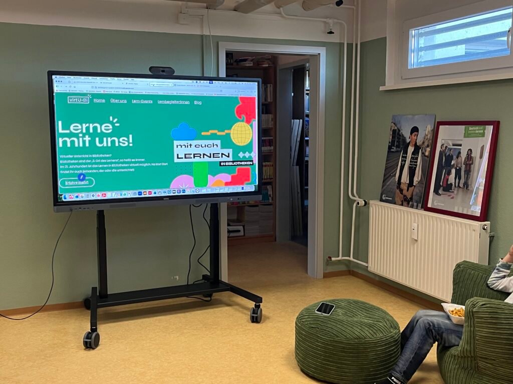 Willkommen im virtU-Bi! Das neue Jahr wurde natürlich gleich mit eigenem Gemälde begrüßt! Unsere Freude über die neue Art von Bibliothek können und wollen wir nicht verstecken!